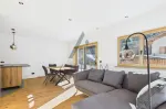 Die Wohnung überzeugt durch einen großzügigen Wohn-Essbereich mit direktem Zugang zur Terrasse und in den gepflegten Garten. Die hochwertige Küche mit Kochinsel ist bestens ausgestattet und verfügt über Siemens-Geräte, eine Bora-Kochfeldabzugslösung sowie einen Liebherr-Kühlschrank.