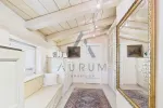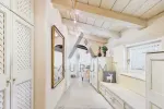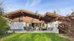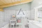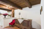 Die obere Ebene empfängt Sie mit einem einladenden Eingangsbereich, einer Garderobe und einem separaten WC. Von hier gelangt man in das rund 50 m² große Wohnzimmer mit offenem Sichtdachstuhl und Kachelofen – ein gemütlicher Mittelpunkt des Hauses. Über eine große Schiebetüre führt der Weg direkt auf die teilweise überdachte Südwest-Terrasse mit Blick in den gepflegten Garten. Die angrenzende Wohnküche mit traditioneller Vertäfelung, Essbereich, Zusatzofen und Speis lädt zum gemeinsamen Kochen und Verweilen ein. Diese Etage verfügt ebenfalls über ein Schlafzimmer, ein großzügiges Ankleidezimmer und ein Badezimmer.