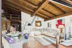 - Großzügiges Wohnzimmer mit Sichtdachstuhl und Kachelofen