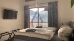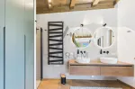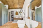 Der private Bereich des Penthouses umfasst einen Wellnessbereich mit eigener Sauna, Dusche und WC, ein weiteres Schlafzimmer sowie ein großzügiges Masterschlafzimmer mit Bad en suite, das mit Dusche, Badewanne und separatem WC ausgestattet ist. Über beide Schlafzimmer gelangt man ebenfalls direkt auf den Balkon, der zusätzlichen Freiraum und herrliche Aussicht bietet.