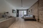 - edle Holzböden in Lärche sowie keramischen Fliesenbelag