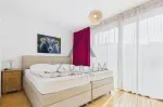 Im Obergeschoss befinden sich zwei Schlafzimmer, jeweils mit eigenem Balkon, sowie ein Badezimmer.