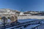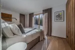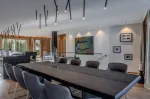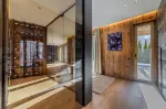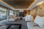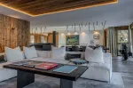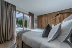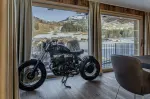 Die Terrasse bietet einen herrlichen Blick auf die umliegenden Berge und ist über den Wohnraum, die Schlafzimmer und den Wellnessbereich erreichbar.