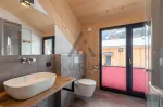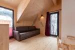 Im Erdgeschoss empfängt Sie der Eingangsbereich. Ein separates WC sowie ein großzügiger Saunabereich inkl. Dusche sorgen für Erholung nach einem aktiven Tag. Das Herzstück des Hauses ist der offene Wohn- und Essbereich inklusive vollständig ausgestatteter Küchenzeile. Zusätzlich befindet sich im Erdgeschoss ein Schlafzimmer mit Doppelbett. Die Terrasse mit eigenem Jacuzzi/Whirlpool lädt zum Entspannen unter freiem Himmel ein.