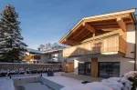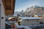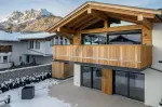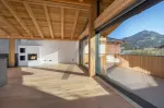 Das Dachgeschoss bietet einen offen gestalteten Wohn-/Ess-/Küchenbereich mit Kamin, Sichtdachstuhl und moderner Einbauküche mit Premium-Einbaugeräten. Der Masterbereich mit Ankleidezimmer und Bad en suite befindet sich auf der selben Ebene. Auf den großzügigen Balkonflächen können Sie den wunderbaren Blick auf den Wilden Kaiser und das Kitzbüheler Horn genießen.