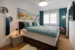 Die großzügig geschnittene Wohnung verfügt über einen offenen Wohn- Essbereich mit integrierter Profiküche mit hochwertigen Miele-Geräten, einen Masterbereich mit großem Badezimmer, ein weiteres Schlafzimmer mit Duschbad, sowie einen großzügigen Eingangsbereich, ein Gäste WC und einen Abstellraum mit Waschmaschine und Trockner.