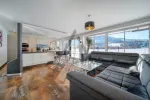 Der Wohnbereich verfügt über hochwertige Einbauten und eine edle Küche mit Markengeräten, sowie einen Kaminanschluss.