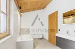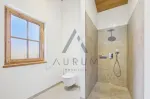 - edle Holzböden in Lärche sowie keramischen Fliesenbelag