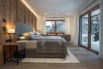 Auf je drei Etagen erstrecken sich drei Schlafzimmer mit Bädern ensuite, Wellnessbereich, eigener Aufzug, offener Wohn- / Ess- und Kochbereich mit Altholz-Sichtdachstuhl, offener Kamin und Sonnenterrassen mit Blick in die Bergwelt.