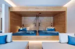 Im Wellnessbereich steht Erholung im Mittelpunkt: Verschiedene Saunen, ein Hamam, Ruhezonen sowie ein 36 Meter Infinity-Pool (Indoor und Outdoor) laden zum Entspannen ein. Der Fitnessraum mit modernster Ausstattung ergänzt das Angebot.