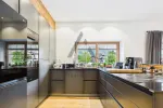 Im Inneren wurde kompromisslos auf Qualität gesetzt: Maßgefertigtes Interieur, edle Materialwahl und modernste Technik schaffen ein Ambiente von zeitloser Eleganz. Ob im großzügigen Wohnbereich mit Gas-Kamin, der Design-Küche mit Frühstücksplatz, dem Mastertrakt mit Schlafzimmer, Ankleiden und Luxusbad oder im stilvollen Gästeapartment mit angeschlossen Homeoffice, welches als drittes Schlafzimmer genutzt werden kann – jeder Raum spiegelt Raffinesse, Individualität und Perfektion wider.