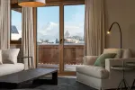 On the first floor, you\'ll find two spacious bedrooms, each with an en-suite bathroom and access to balconies with mountain views.