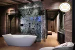 The unit comes with a 6m² fully equipped ski room and two underground parking spaces.