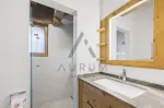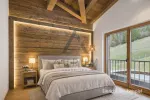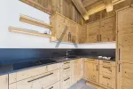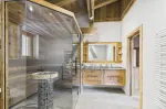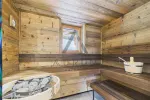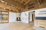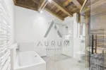 The apartment has three bedrooms, including a stylish master bedroom with fitted wardrobes, old wood wall, en suite bathroom and private sauna. A further bathroom also serves as a guest WC and as a bathroom for the two additional bedrooms.