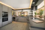 The beautiful and spacious kitchen on the ground floor is of very high quality and is equipped with Miele and Gaggenau appliances. A large table invites you to get together comfortably.